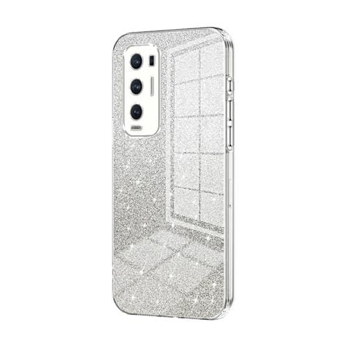 Para Oppo Reno5 Pro + Estuche para Teléfono Galvanizado con Polvo de Brillo Degradado (Transparente)