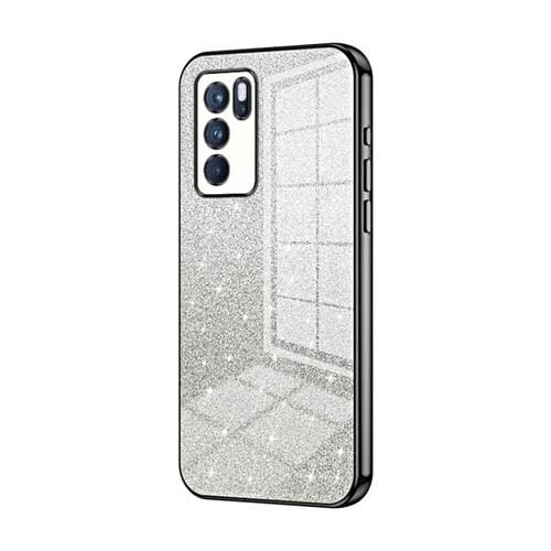 Para Oppo Reno6 Pro Funda para Teléfono Galvanizada con Polvo de Brillo Degradado Indio (Negro)