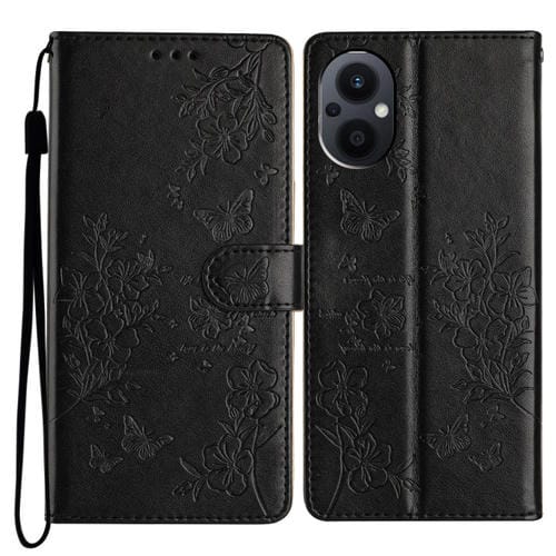 Para Oppo Reno8 Lite 5G Butterfly Love Flower Funda de Cuero para Teléfono En Relieve (Negro)