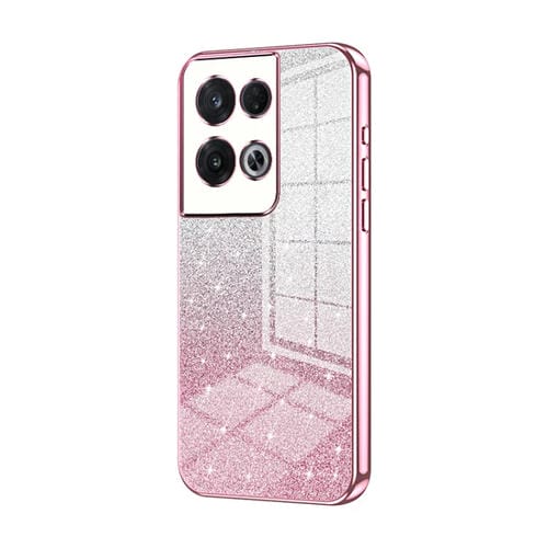 Para Oppo Reno8 Pro Estuche para Teléfono Galvanizado con Polvo de Brillo Degradado (Rosa)