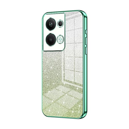 Para Oppo Reno9 Pro + Estuche para Teléfono Galvanizado con Polvo de Brillo Degradado (Verde)