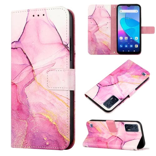 Funda con Tapa de Cuero para Oukitel C31 Pt003 Diseño Mármol (Rosa Púrpura Dorado)