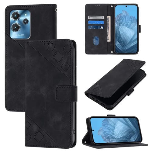Funda de Cuero para Oukitel C32 Skin Feel con Relieve (Negro)