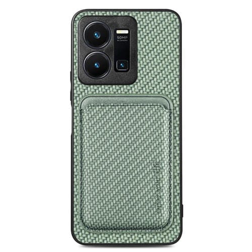 Para para para Vivo Y35 Tarjeta de Cuero de Fibra de Carbono Magsafe Case (Verde)