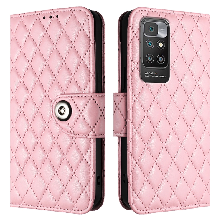 Para Redmi 10 / Redmi 10 2022 Funda para Teléfono de Cuero con Tapa con Textura Rómbica y Cordón (Rosa)