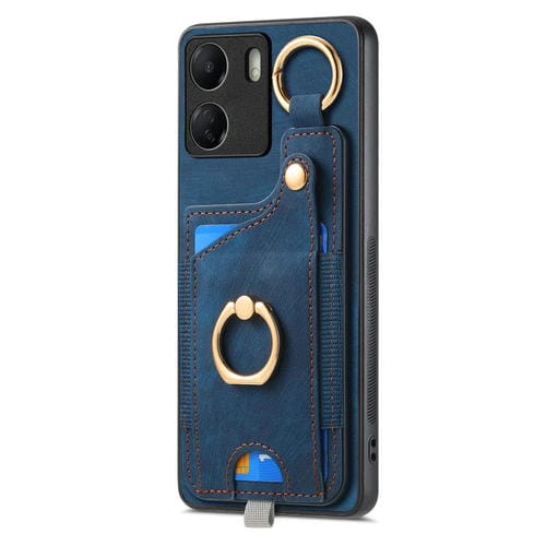 Para Redmi 12C Funda para Teléfono con Bolsa para Tarjeta con Anillo y Sensación de Piel Retro con Lazo para Colgar (Azul)