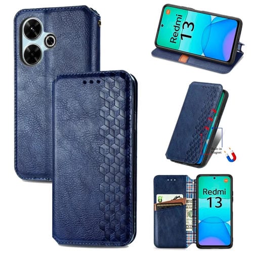 Para Redmi 13 4G Cubic Grid Funda de Teléfono de Cuero Magnético Prensado (Azul)