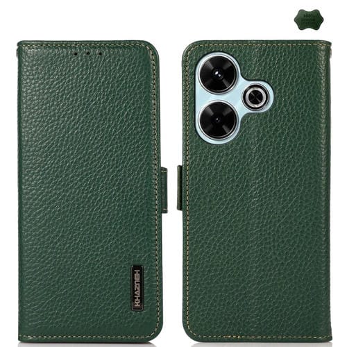 Para Redmi 13 4G Khazneh Funda para Teléfono Rfid de Cuero Genuino Litchi Lateral Magnético (Verde)