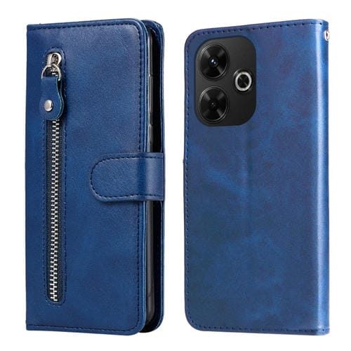 Para Redmi 13 4G / Redmi Note 13R Funda para Teléfono de Cuero con Cremallera y Textura de Becerro a la Moda (Azul)