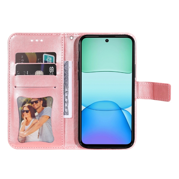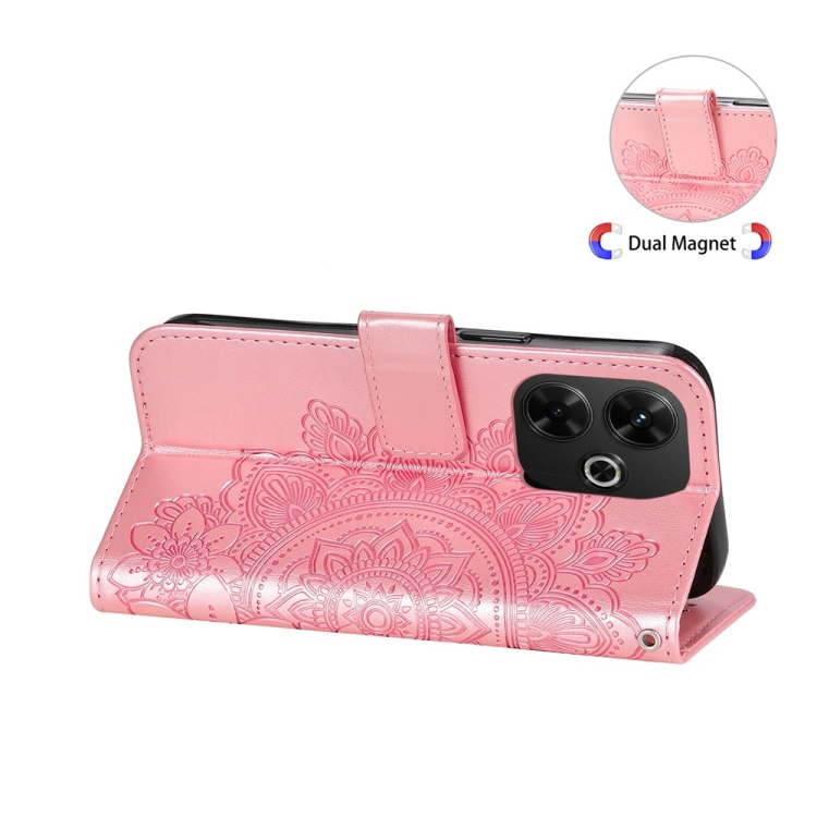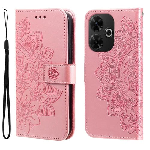 Para Redmi 13 4G / Redmi Note 13R Funda para Teléfono de Cuero con Estampado de Flores de Siete Pétalos (Oro Rosa)