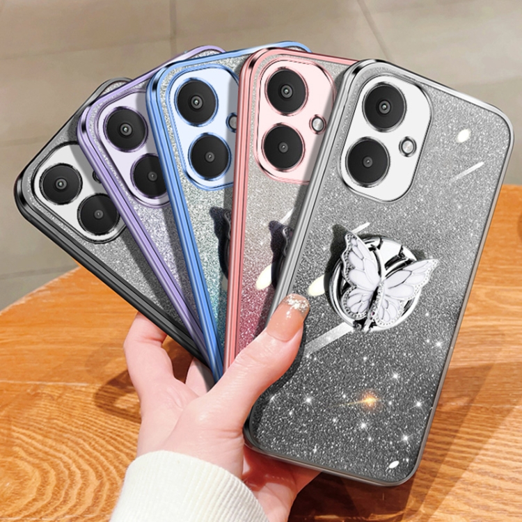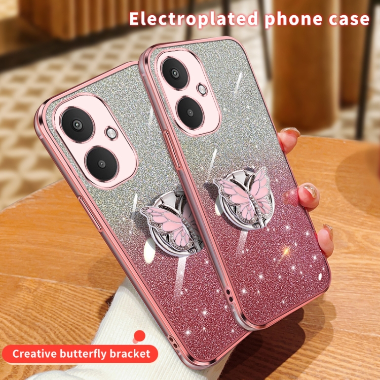 Para Redmi 13C 5G Funda para Teléfono de TPU con Soporte de Mariposa con Brillo Degradado Plateado (Rosa)