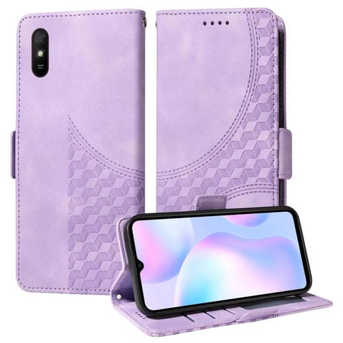 Para Redmi 9A / 9I Funda para Teléfono de Cuero Estrellado con Rombos En Relieve (Púrpura)