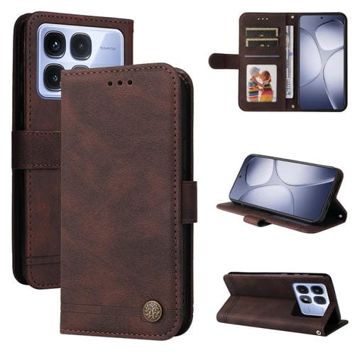 Para Redmi K70 Ultra Skin Feel Life Tree Funda de Cuero con Botón de Metal (Marrón)