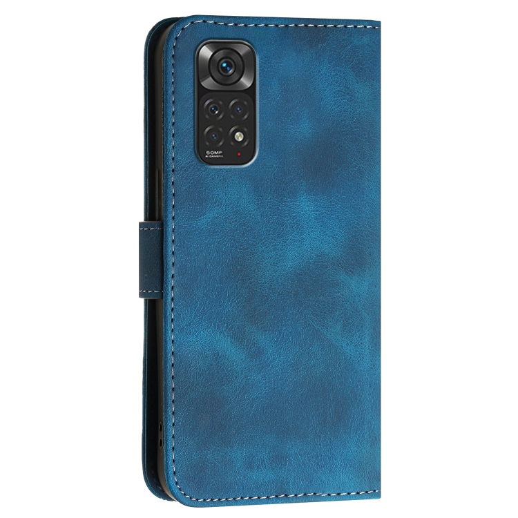 Para Redmi Note 11 4G Global Yx0080 Grid Butterfly Patrón En Relieve Funda de Cuero con Tapa para Teléfono con Cordón (Azul Oscuro)