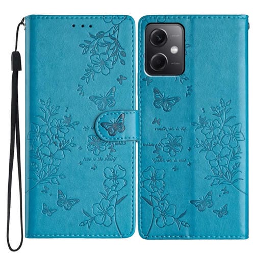 Para Redmi Note 12 5G Funda de Cuero para Teléfono con Mariposas y Flores Globales (Azul)