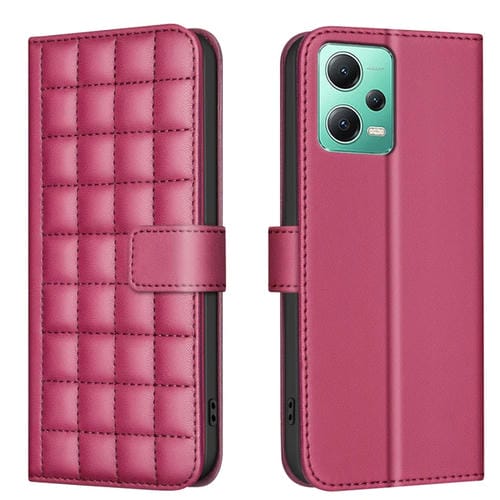 Para Redmi Note 12 5G Global / Xiaomi Poco X5 Funda de Cuero para Teléfono con Textura Cuadrada (Rojo)