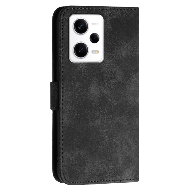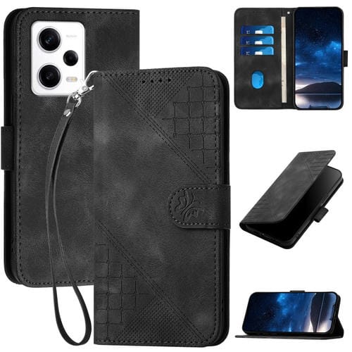 Para Redmi Note 12 Pro Yx0080 Funda de Cuero con Tapa con Patrón En Relieve de Mariposa y Cuadrícula con Cordón (Negro)