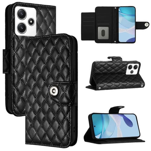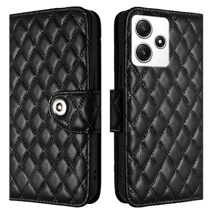 Para Redmi Note 12R Funda de Cuero con Tapa con Textura Rómbica y Cordón (Negro)
