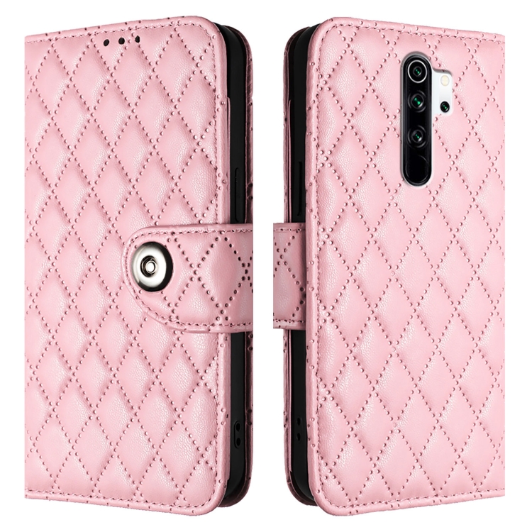 Para Redmi Note 8 Funda de Cuero con Tapa con Textura Rómbica y Cordón (Rosa)