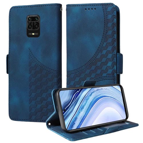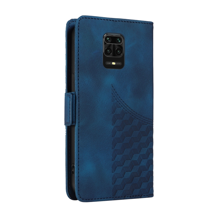 Para Redmi Note 9 Pro 4G Funda para Teléfono de Cuero Estrellado con Rombos En Relieve (Azul)