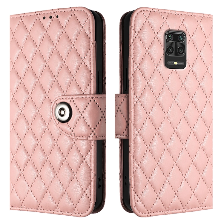 Para Redmi Note 9S / Note 10 Lite Funda para Teléfono de Cuero con Tapa con Textura Rómbica y Cordón (Rosa Coral)