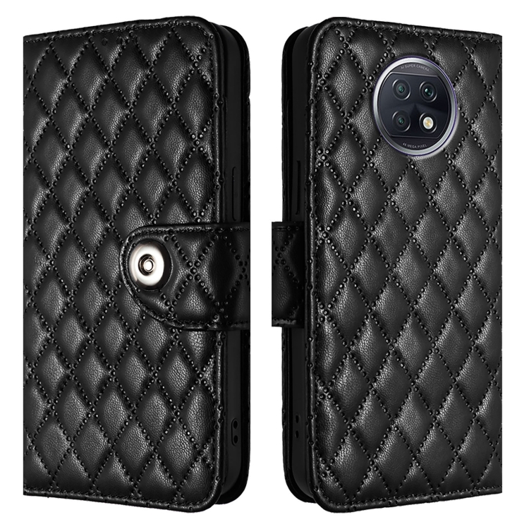 Para Redmi Note 9T Funda de Cuero con Tapa con Textura Rómbica Global y Cordón (Negro)