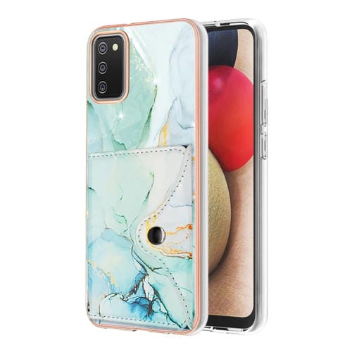 Estuche para Teléfono Samsung Galaxy A02S Versión UE con Ranura para Tarjeta Imd Patrón de Mármol (Verde)