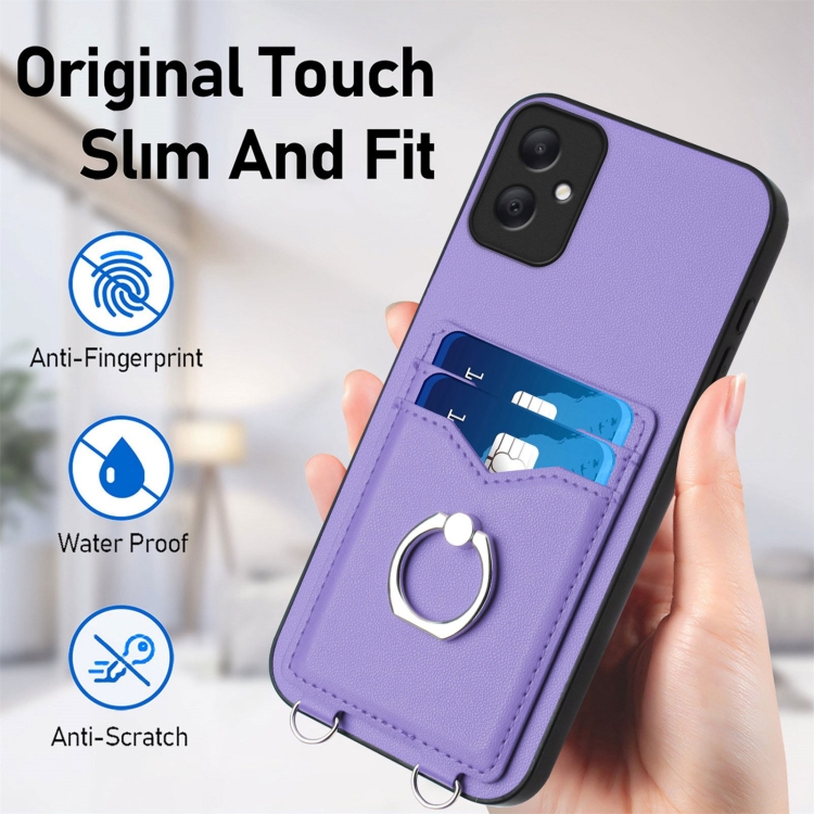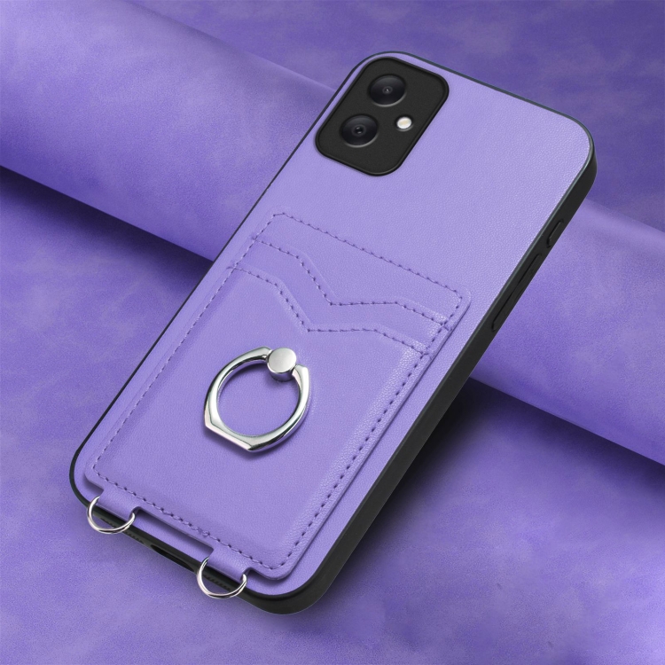 Estuche para Teléfono Samsung Galaxy A05 4G Global R20 con Soporte para Tarjeta y Anillo (Púrpura)