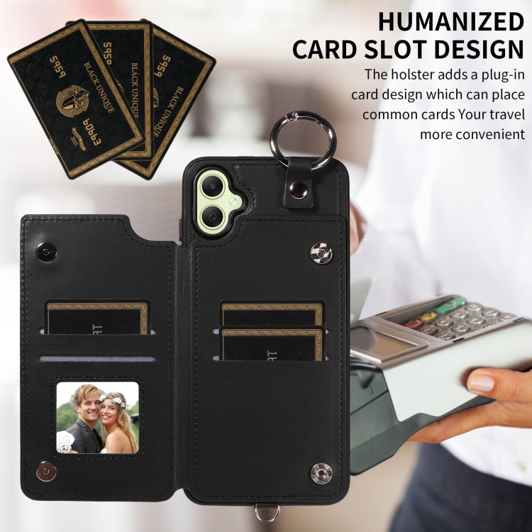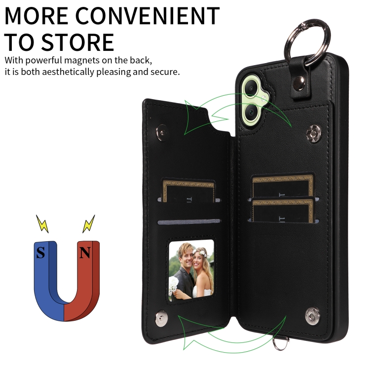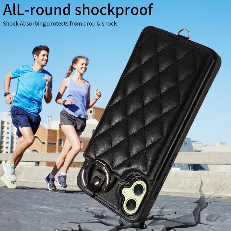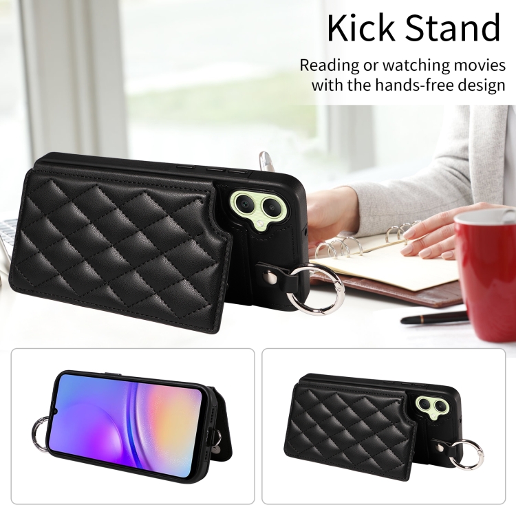 Estuche para Teléfono Samsung Galaxy A05 con Bolsa para Tarjetas Textura Rómbica y Cordón Corto (Negro)