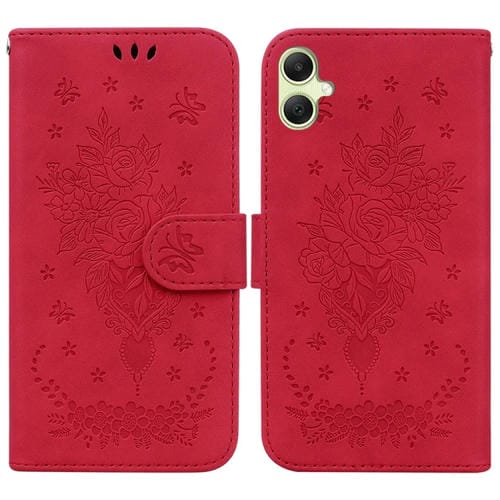 Funda para Teléfono Samsung Galaxy A05 Cuero Relieve Mariposa y Rosa (Rojo)