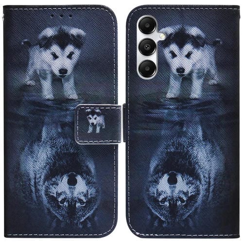 Funda de Cuero Samsung Galaxy A05S con Tapa y Dibujo Coloreado (Lobo y Perro)