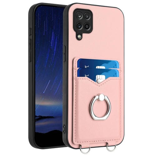 Estuche para Teléfono Samsung Galaxy A12 R20 con Soporte para Tarjeta con Anillo (Rosa)