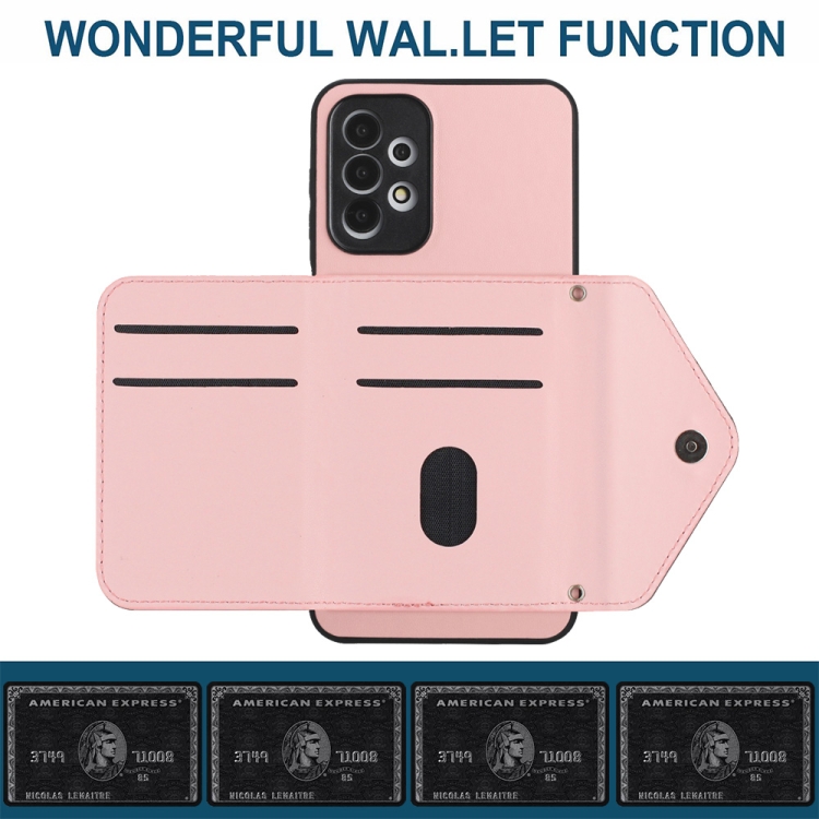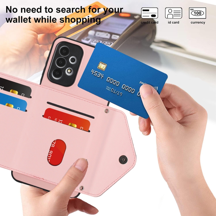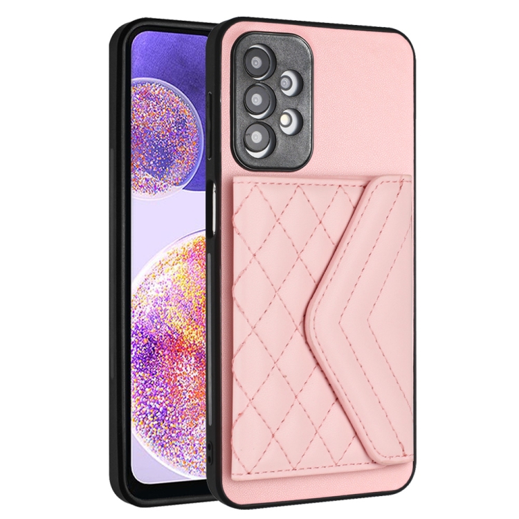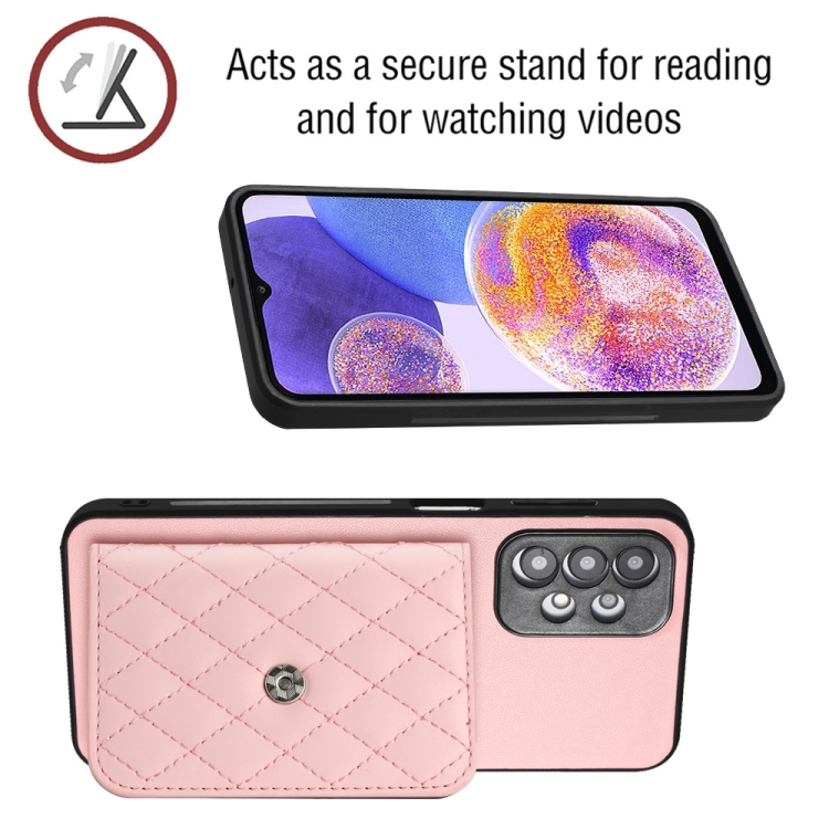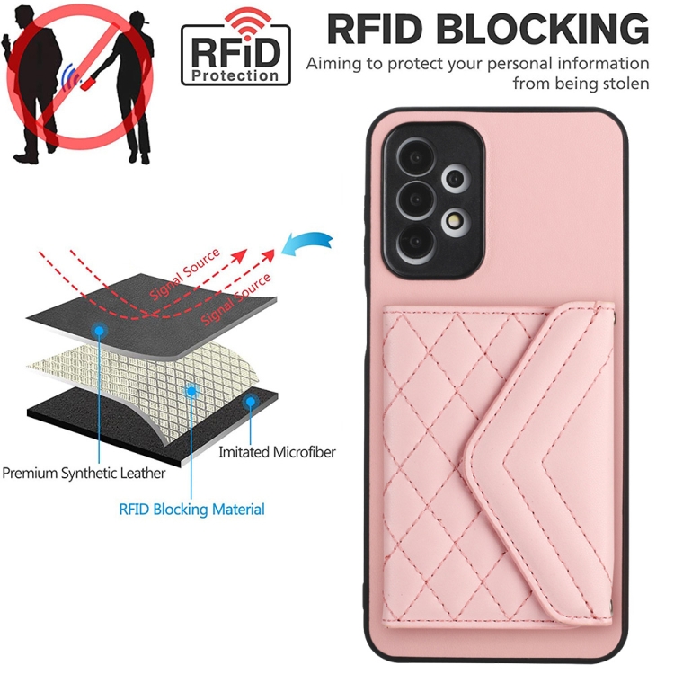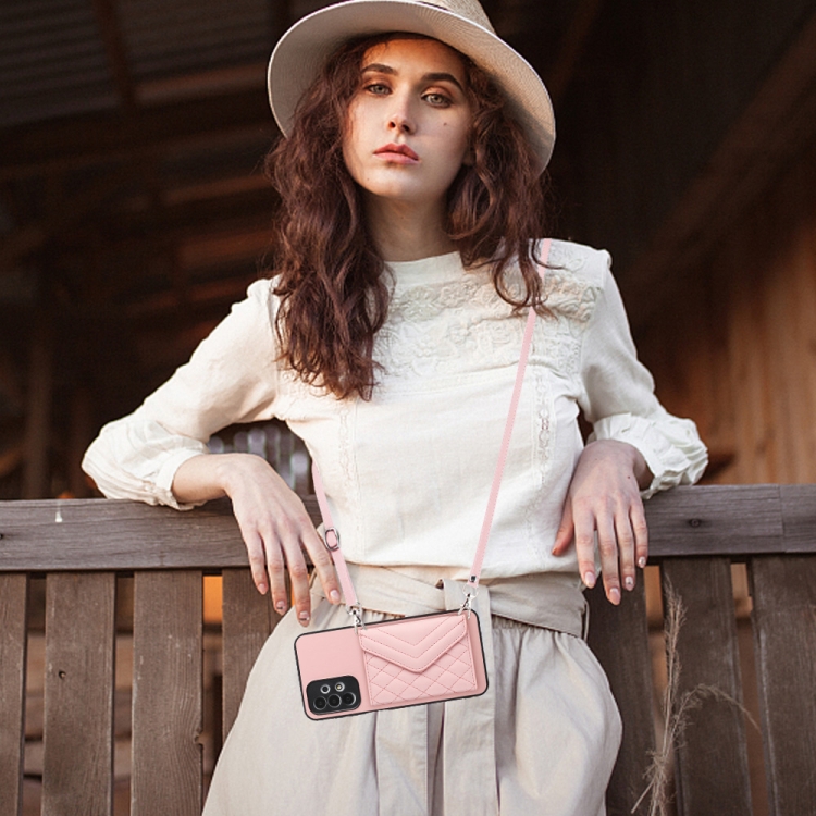 Funda para Teléfono Samsung Galaxy A13 4G con RFID Bolsa para Tarjetas Textura Rómbica Cordón Largo (Oro Rosa)