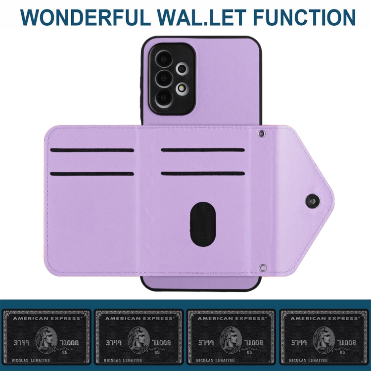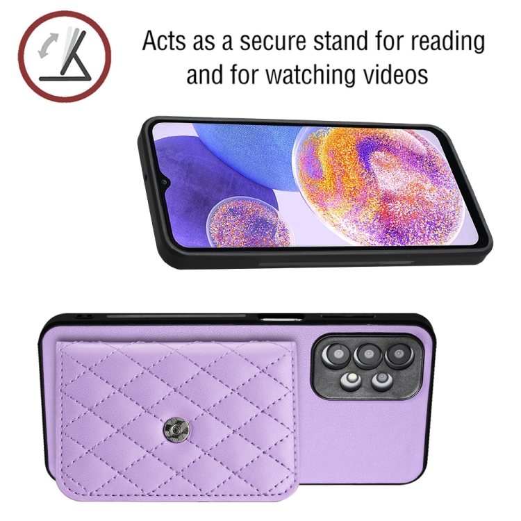 Funda para Teléfono Samsung Galaxy A13 4G Rfid con Bolsa para Tarjetas Textura Rómbica Cordón Largo (Púrpura Claro)