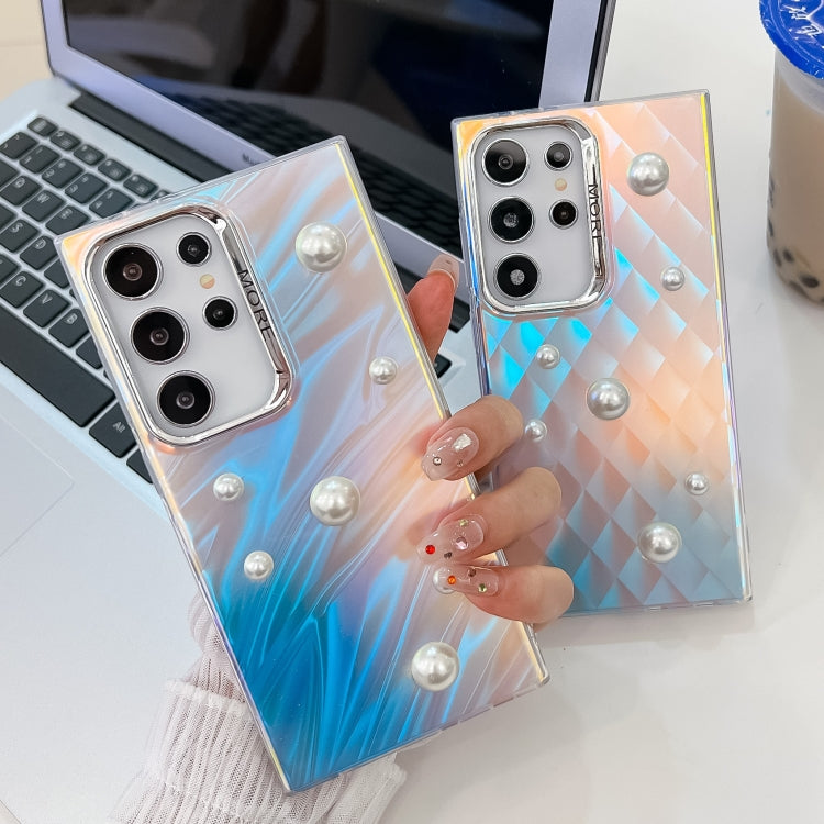 Caja de teléfono TPU Samsung Galaxy A14 5G Textura Láser Perla Galvanizada (Rayas de Cd)