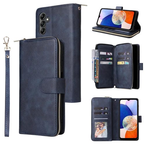 Funda tipo billetera Samsung Galaxy A15 5G con 9 ranuras para tarjetas y cremallera (Azul)