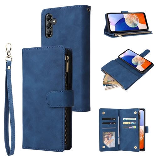 Funda de Cuero Samsung Galaxy A15 5G con Billetera y Cremallera Esmerilada Multifuncional (Azul)