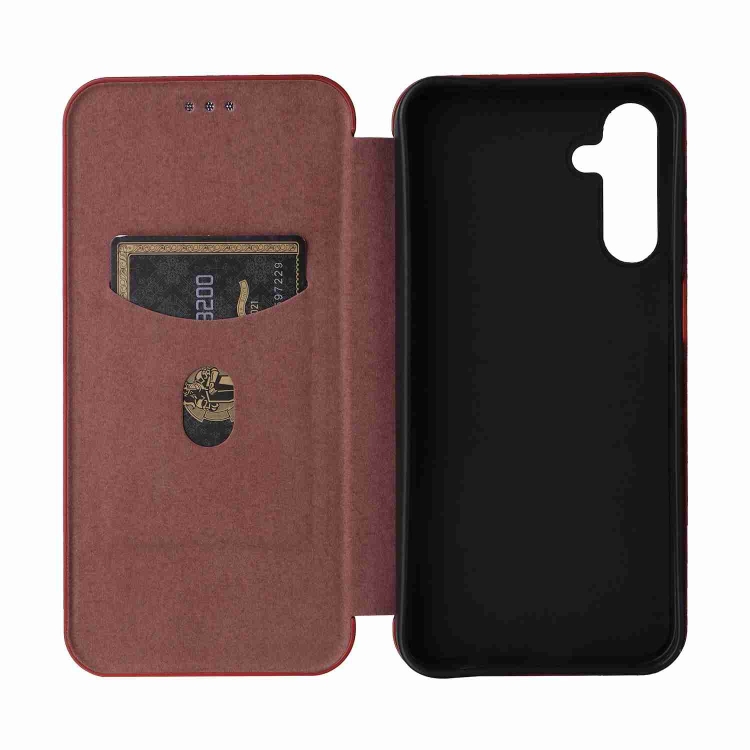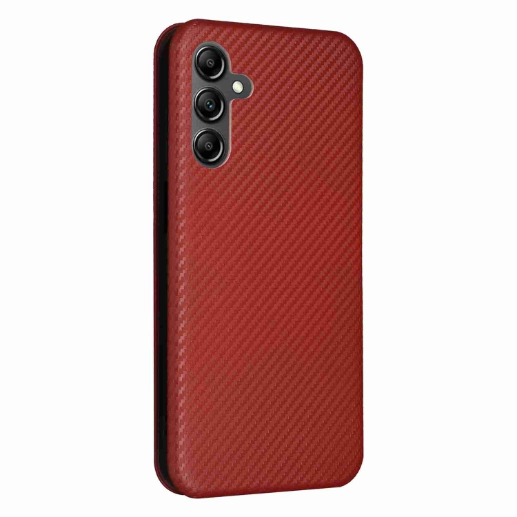 Funda de Cuero para Samsung Galaxy A15 con Tapa y Textura de Fibra de Carbono (Marrón)
