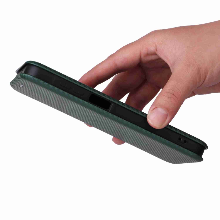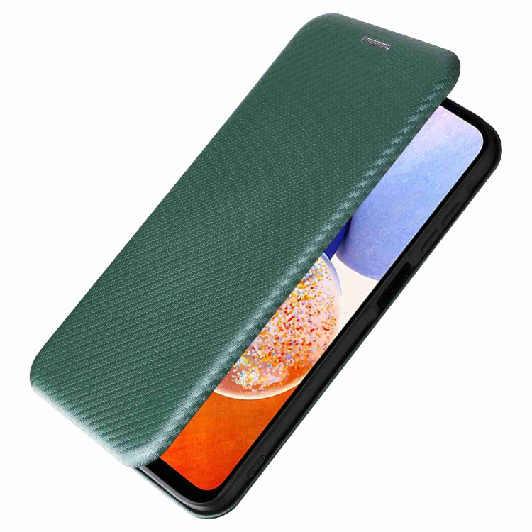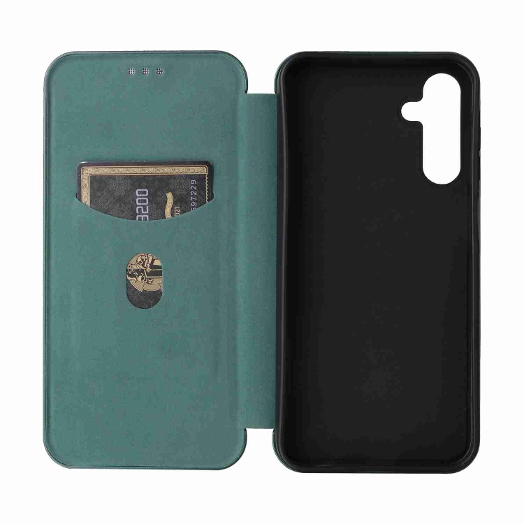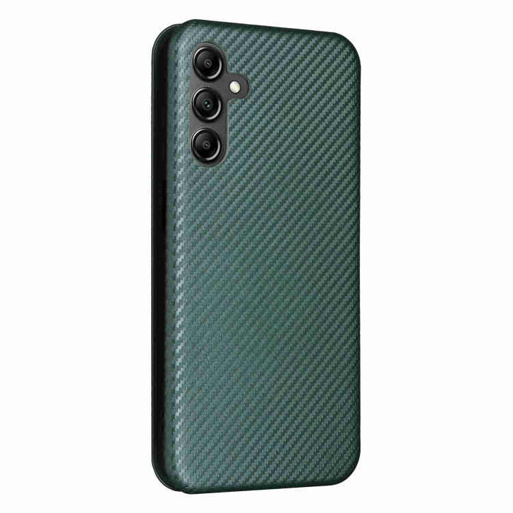 Funda de Cuero para Samsung Galaxy A15 con Tapa y Textura de Fibra de Carbono (Verde)