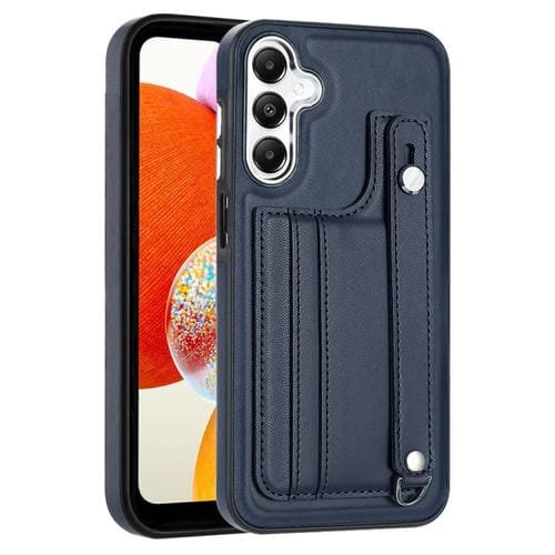 Funda para Samsung Galaxy A15 de Cuero a Prueba de Golpes con Correa para Muñeca (Azul)