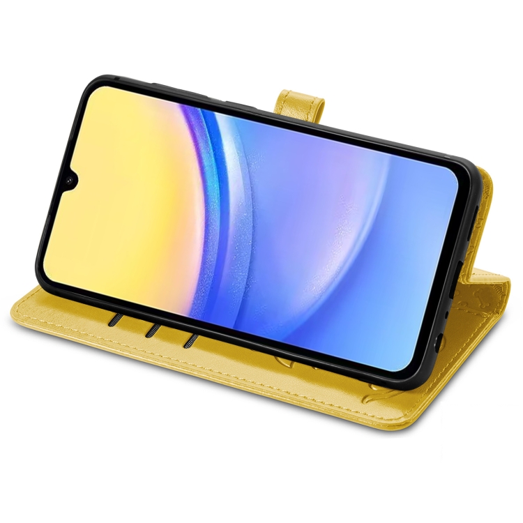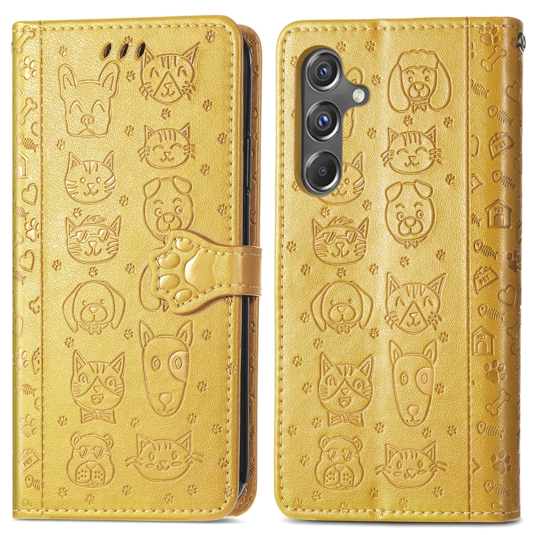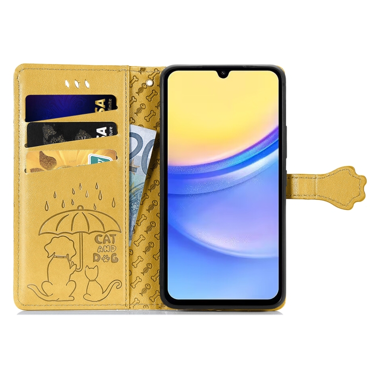 Funda para Teléfono Samsung Galaxy A15 Cuero Relieve Gato y Perro (Amarillo)
