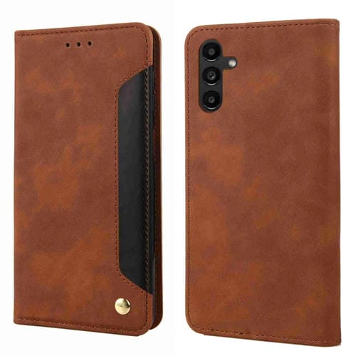 Funda de Cuero para Samsung Galaxy A15 Skin Feel Splicing (Marrón)
