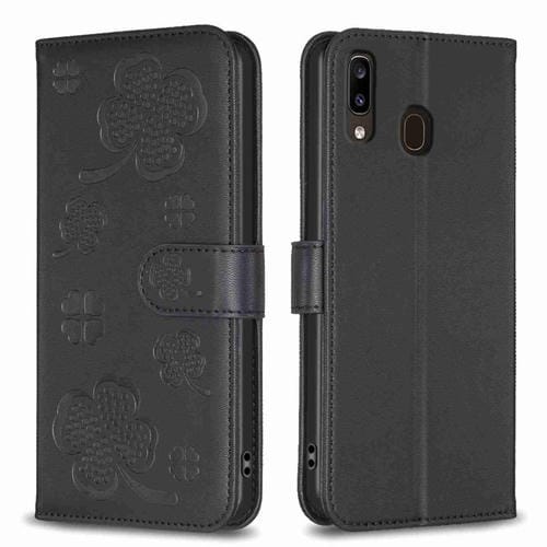 Funda para Teléfono Samsung Galaxy A20 A30 Cuero Relieve Cuatro Hojas (Negro)