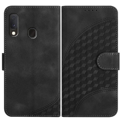 Funda de Cuero Samsung Galaxy A20E A10E Yx0060 con Relieve Cabeza de Elefante y Cordón (Negro)