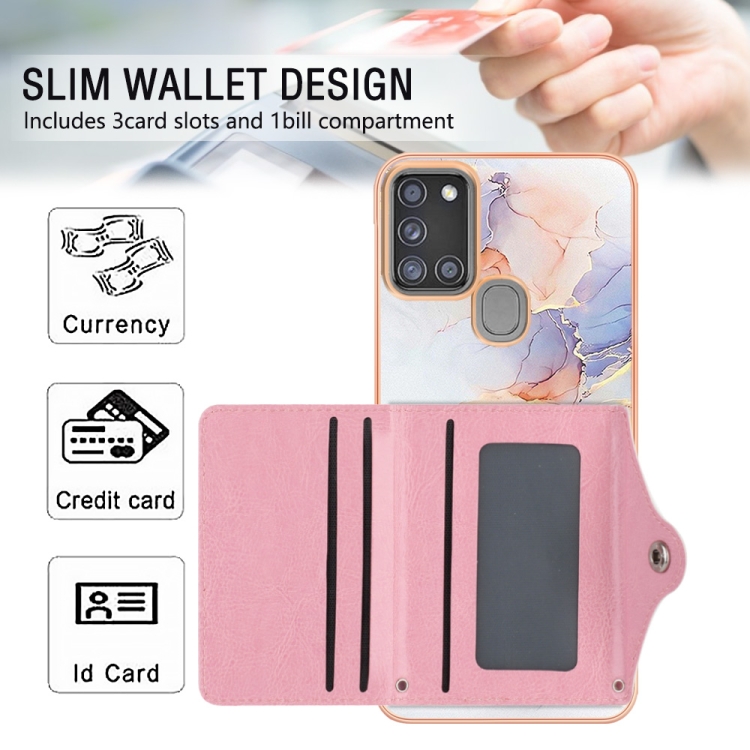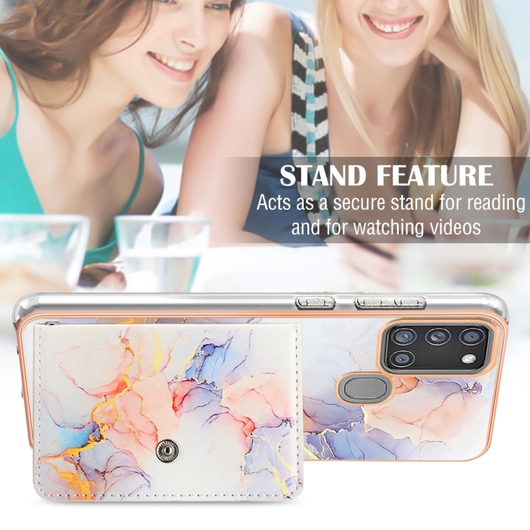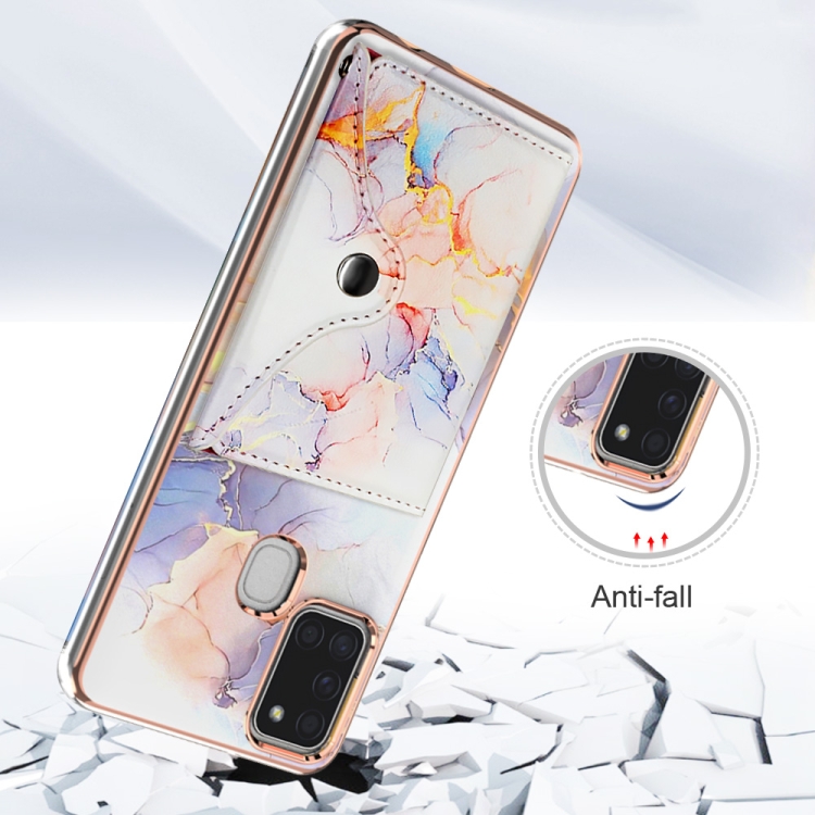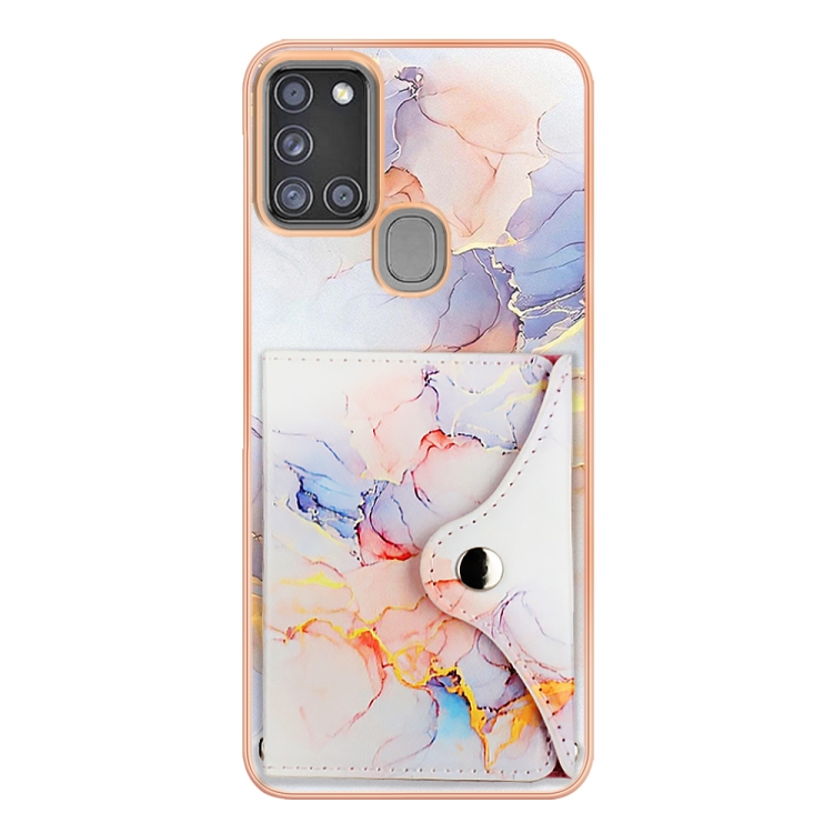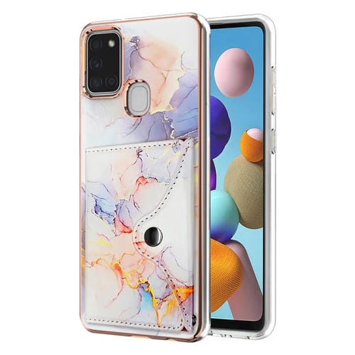 Estuche para Teléfono Samsung Galaxy A21S con Ranura para Tarjeta Imd y Patrón Mármol (Blanco)
