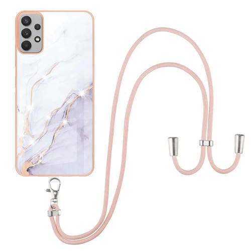 Estuche TPU Samsung Galaxy A23 5G 4G Patrón Mármol Electroplation con Cordón (Blanco)
