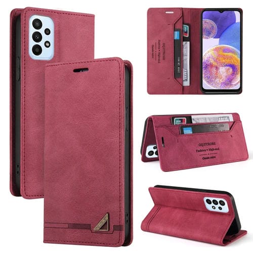 Funda de Cuero para Samsung Galaxy A23 Skin Feel con Tapa Horizontal Cepillo Antirrobo y Soporte (Rojo Vino)