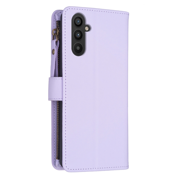 Para Samsung Galaxy A24 4G 9 Ranuras para tarjetas Cremallera Cartera Funda de cuero con tapa para teléfono (Morado claro)