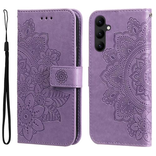 Estuche para Teléfono Samsung Galaxy A24 4G Cuero Estampado Flores 7 Pétalos (Púrpura Claro)