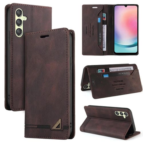 Funda para Samsung Galaxy A24 5G Skin Feel de Cuero con Tapa Horizontal Cepillo Antirrobo y Soporte (Marrón)